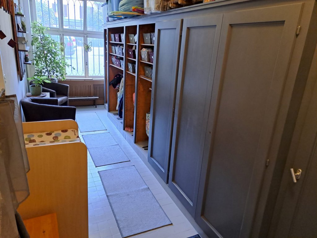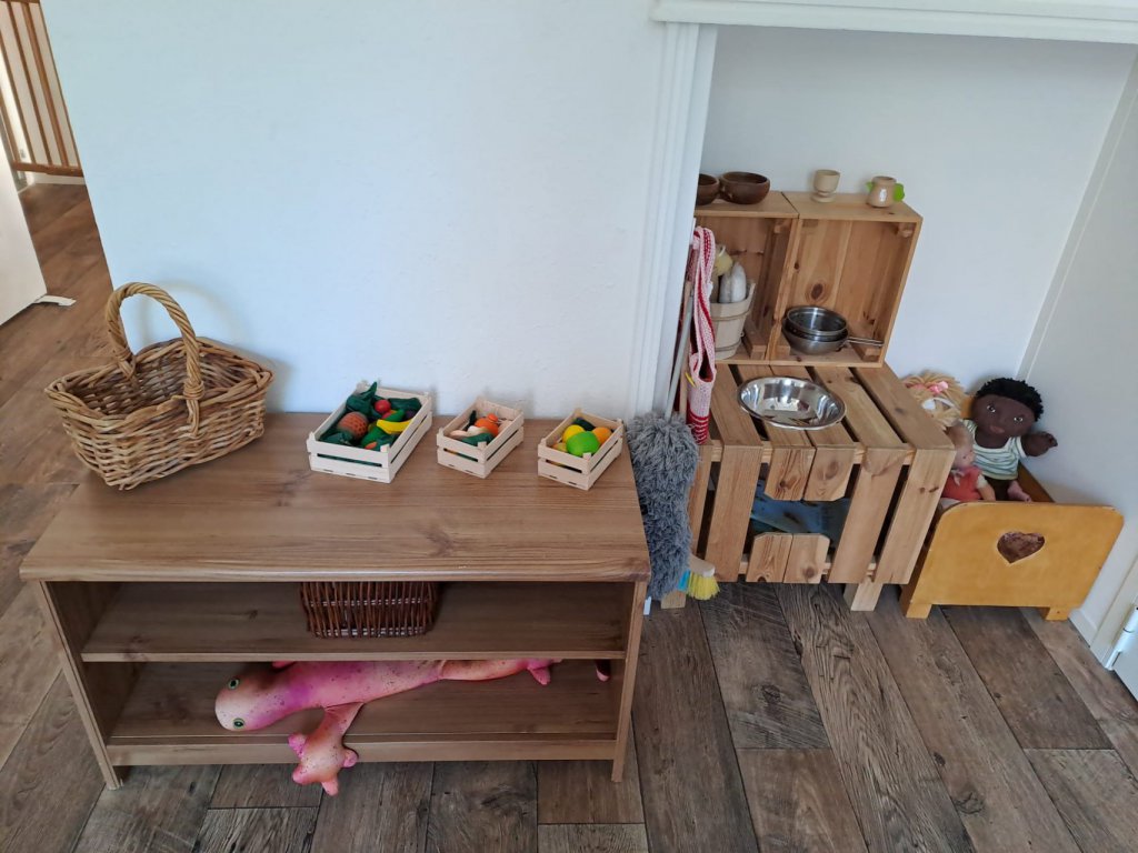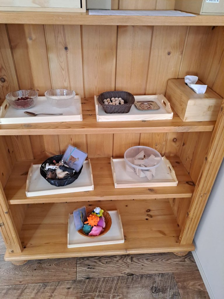 L’ambiance est minimaliste, épurée et très bien rangée ; chaque chose, chaque objet est placé d’une manière réfléchie et vient nourrir le besoin d’ordre de l’enfant et de retrouver les choses à leur exacts places. Elle aide l’enfant à se structurer à l’intérieur de lui, l’adulte est garant de cet ordre.
