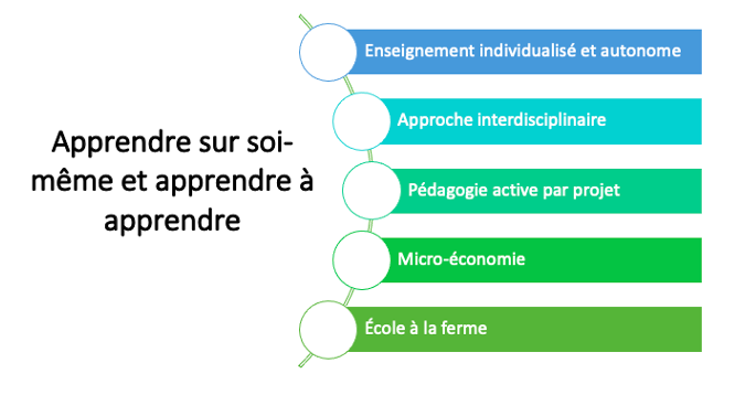 L'élève est placé au cœur de son processus d'apprentissage. L'enseignant est là pou accompagner le processus d'apprentissage. Il n'est plus le seul détenteur du savoir.